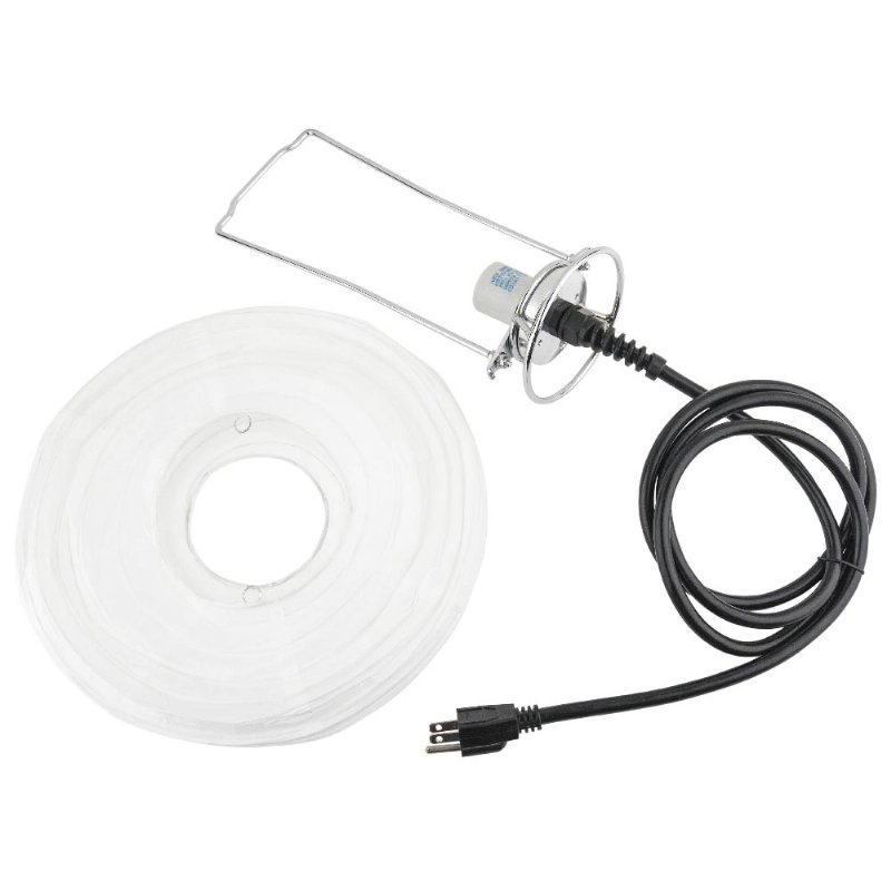 China Ball, or Chinese paper lanterns is made by paper lantern holder and lamp socket for creating natural soft light and pleasant skin tones in the film and video field. The frame of Kupo China ball, constructed from quality 3/16’’ ( 5 mm) steel with chrome plated surface treatment, is interchangeable by removing the screw nuts if the different size of lantern paper is needed. The rotatable steel ring makes it easy to control the output of light while the fabric is attached. The anti-kinking spiral top cable gland is also equipped to prevent the cable becoming loose when subject to vibration. Ceramic lamp socket is firmly fixed on the round metal plate keeps the bulb from wobbling. Two 1/4’’-20 and two 3/8’’-16 threaded holes are pre-drilled underneath round plate provides a great mounting solution through any grip equipment comes with 1/4’’-20 or 3/8’’-16 thread male.