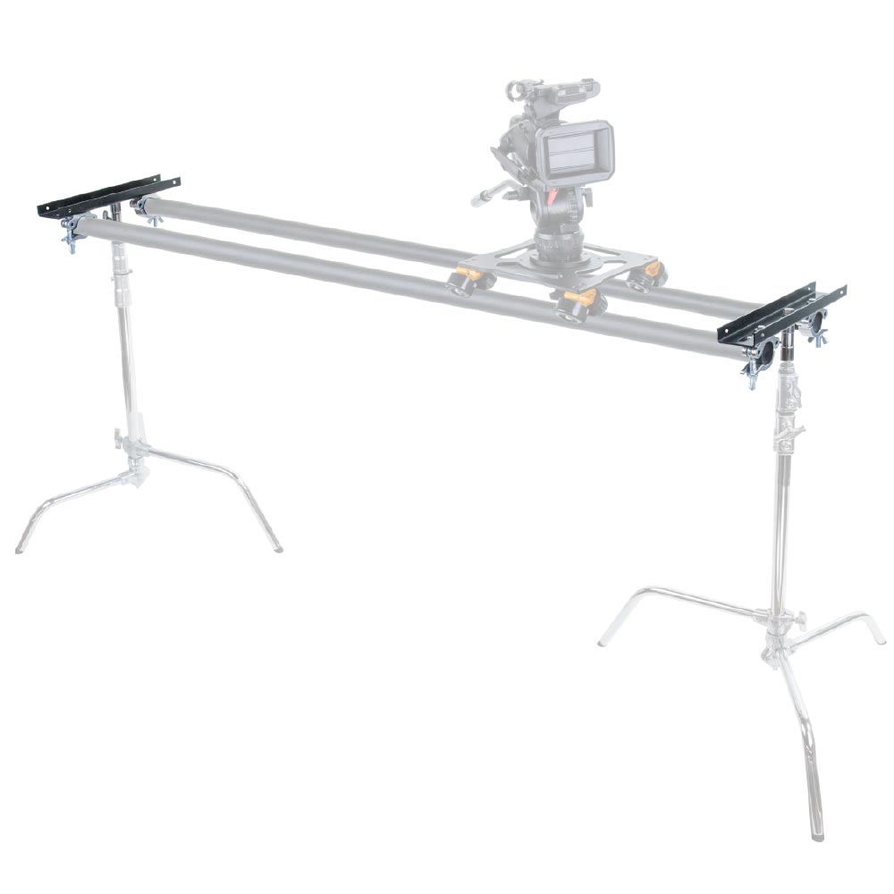 The universal track end is especially designed for sliders and dollies. It features a 2in (48-50mm) O.D. rail in diameter. The tvmp adapters at the center of the bracket allow mounting to any lighting stands that come witha baby stand or junior receiver . The u-shaped structure also allows the brackets to free-stand on the floor for low-angle shooting. Two adjustable rail holders offer a useable distance between the rails (center to center) from 7.75in (19.7cm) to 15.8in (40.2cm). Additional m10 holes are drilled into each end of the bracket for enhanced stability for mounting the couplers. (set of 2)