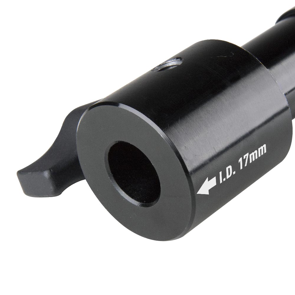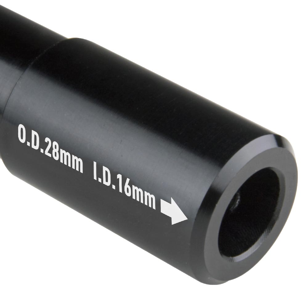This is the most versatile adapter ever. External diameter (28mm spigot) fits a junior receiver, while internal diameters (16mm and 17mm at each end) suits baby pin. Additional threaded hole for relocating the set screws while they are not used. Made of lightweight yet sturdy aluminum alloy with black anodized finish. Legend is clearly laser engraved for identification.