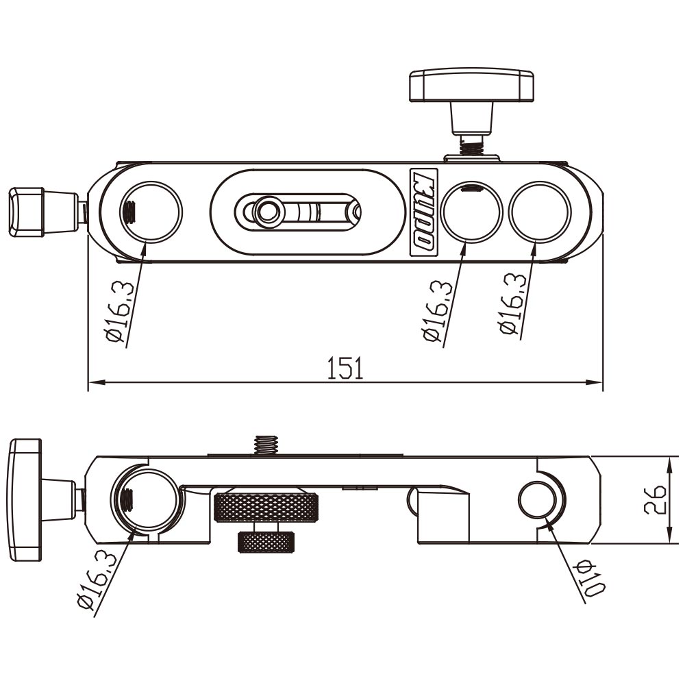 The bracket is constructed with aluminum die-casting, ensuring longevity and reliability in demanding shooting conditions. The bracket features a sturdy platform with a 1/4"-20 threaded screw, ensuring a secure and stable connection for cameras. It also provides a 1/4"-20 to 3/8"-16 adaptor to accept different size of thread mounts such as lighting, flash or monitor. This bracket serves a dual purpose by allowing the attachment of both a flash and an umbrella simultaneously. It enables photographers to mount their flash securely while also providing a dia.10mm hole to mount a standard-sized umbrella to control lighting conditions. The bracket features 4 standard 5/8" (16mm) female sockets, allowing for easy mounting on various lighting stands, tripods, arm or other support systems.