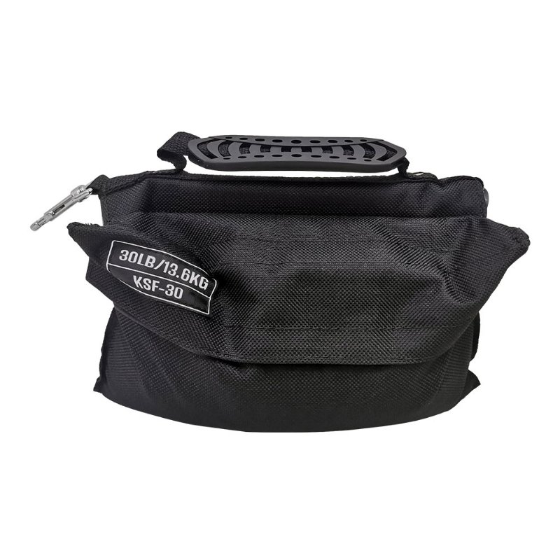 Made of 1,000D Cordua Nylon with plastic internal liner, Kupo 30 lb shot bag features 2mm steel balls encapsulated in the poly inner bag and securely keep those steel balls in the shot bag with the double Velcro design. The rubberized handle is also equipped for easy repositioning. The eyelet and spring lock attached to the bag for easy mounting on the book hook.
