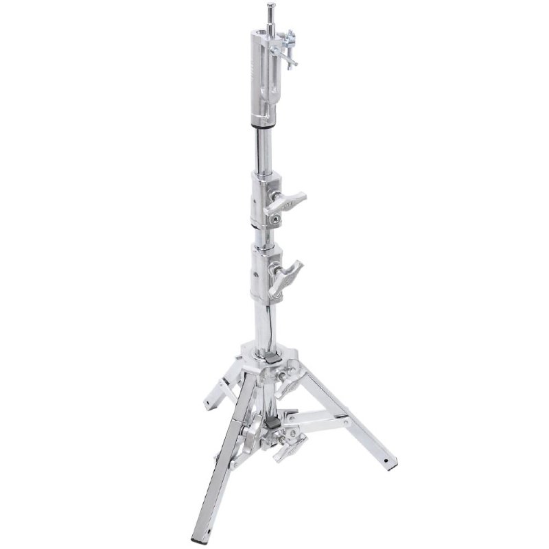 The Kupo Short Low Mighty Stand is constructed from chrome palte steel which can hold loads up to 33lbs(15kg) at a maximum working height of 39.8" (101cm) using a 2 riser, 3 section design. It's specially designed to be used with a heavy lighting fuxture placed at low level. Also features a leveling leg that enables the user to extend one leg more than the others to level out the stand on an incline or uneven terrain. The solid aluminum casting knob, paired with a stainless bolt, ensures reliable and long-lasting operation. The die-cast riser features a stainless steel heli-coil insert, providing a durable threaded hole. The upper spider casting includes a hanger for convenient storage on the rack. It also features an ear ring device for a wind-bracing kit. The stand leg is equipped with a foot pad, protecting both the leg and the ground. Additionally, it has a sizable brake shoe for a secure lock-off mechanism.