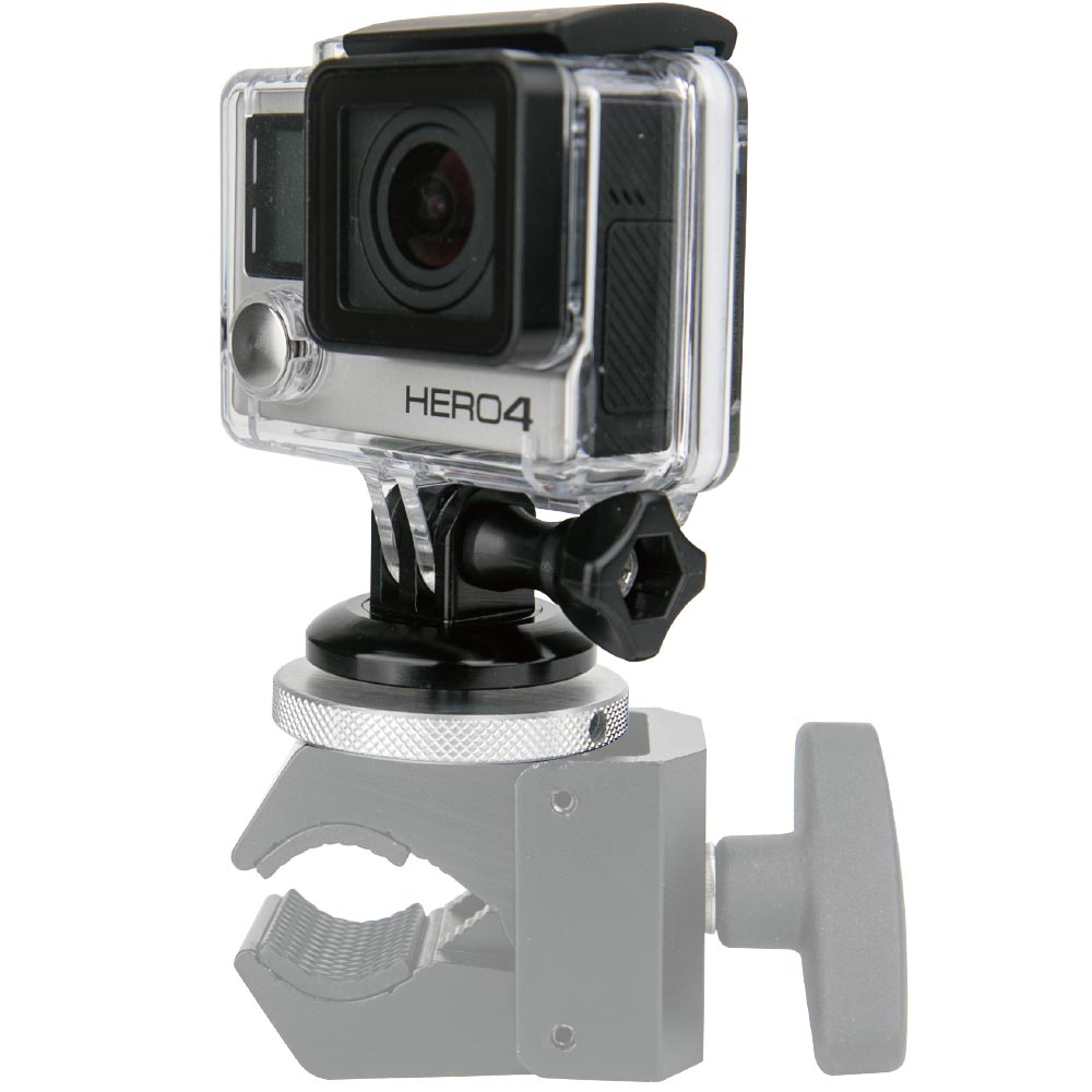 Kupo metal gopro tripod mount with1/4"-20m male thread. Mount on to a super claw convi clamp max or vision arm . Put your gopro almost anywhere.