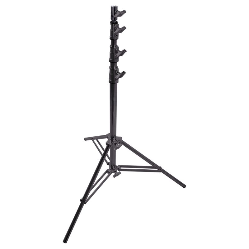 The midi-max baby kit stand is a solid and robust stand made of chrome plated steel and ideally suited for multiple applications. This 3 riser, 4 section stand can support up to 28.7lbs (13kg), and has a maximum height of 11.5ft (350cm), and a minimum height of 3.2ft (97.5cm). The midi-max baby kit stand also features a mounting 5/8in (16mm) stud welded directly to the top riser for increased strength and durability. Casters are also available.