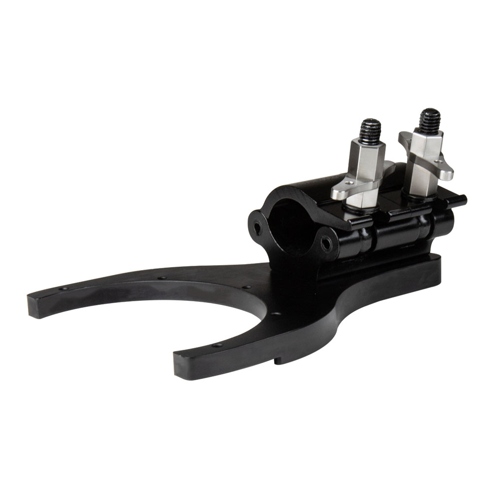 Kupo pipe clamp on paddle is designed for supporting your offset camera rig from the dia.48~51mm pipe. The u bracket is tapped with m6 threads x 5 for easy interchanging mitchell, bowl or euro adapter to meet your specific requirement. Features double clamps equipped on the bracket offering the solidest connection with the 2” pipe. The unique angle adjustment mounting design for the clamp on bracket provides the possibility to change the mounting position in every 45 degree. The stainless steel made speed wing nut can be tightening by hand fast and the hex top end for 19mm wrench if firmest tighten is required.