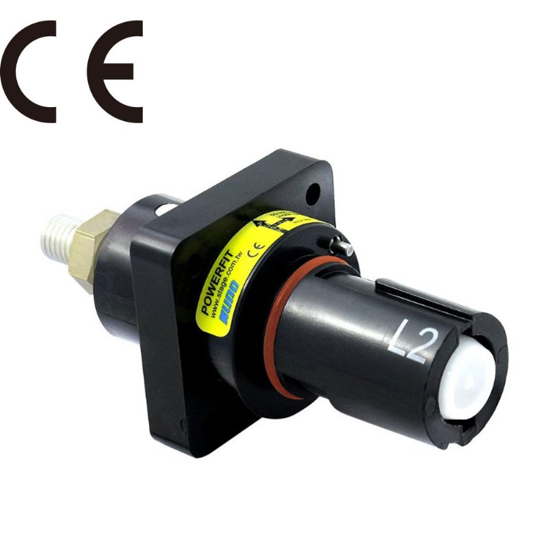 PowerFit connectors are well fabricated and compatible with major brands of single-pole power connector. The invented patent key releasing pin, particularly embedded on each line source and panel source, delivers great safety and convenience without additional tool while uncoupling. PowerFit is made in high standards. Full series employ high impact and temperature resistance thermoplastic, with flame retardant compound. Ergonomic rubber hand grip on each line connector provides the great comfort to the utility. The M40 cable gland comes standard and while connectors mated, it becomes IP67 rated. Unsurpassed pushing button design makes the handling of coupling and uncoupling easier. Respective phase and line information is clearly marked on the connectors for easy identification. The contact is made of brass with silver plated, providing excellent conductivity. Cotter pin is made of POM featuring great insulation, high stiffness, low friction and absorbent.