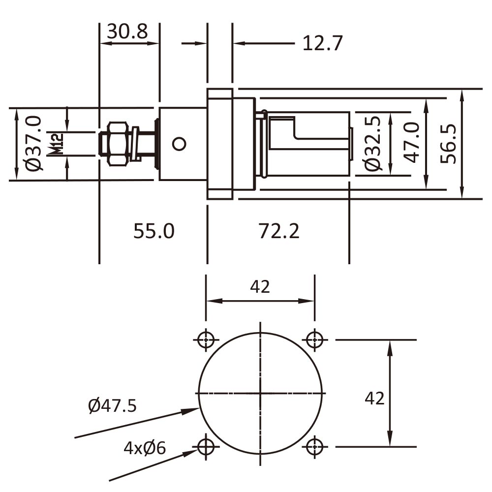- Contact Termination: Supplied with M12 threaded post with brass nut and spring washer for cable attachment.