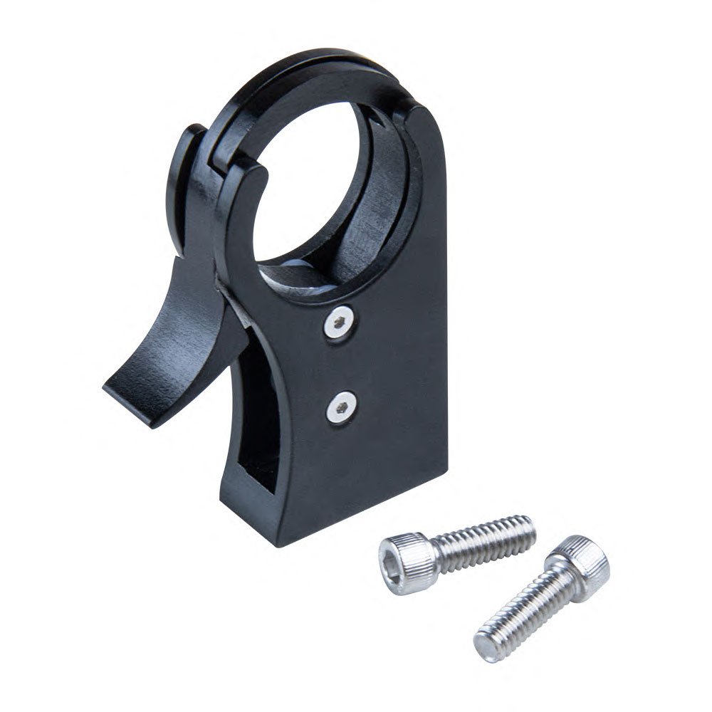 Made of aluminum alloy with black anodized, this gismo comes with single-side spring clip enable clamping stabilizer rig at the jib end, but also easy unclamping and make it possible a single smooth shot. The clip opening to dia.25mm and the bottom with 1/4”-20 threads x 2 and can be fixed to any rig with supplied bolts.