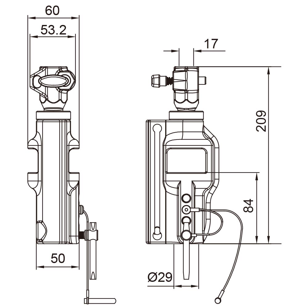 Made of aluminum casting, this spigot adapter features a 5/8”(16mm) baby receiver on one side and a 1-1/8”(28mm) junior receiver on the other. Primarily designed for attaching fixtures or accessories that comes with a 1-1/8”(28mm) junior spigot. And safety wire is built with the clamp to ensure this essential safety aid is always on hand.