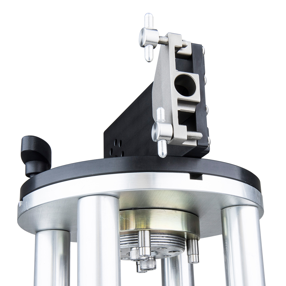 t handle knobs. The other end on the mounting plate with 8 pre-drilled holes that offer 5 indexing angles, and our one piece double clamp allows our hard mount to be affixed to the 48~50mm pipe. The clamp offers a rigid mounting on both the left and right side, giving the operator a quick way of changing the setup on the fly if needed. A mitchell adapter and a simple tie down are supplied to mount the steadicam gear on the mitchell plate by attaching the hard mount plate with 2 x 1/4"-20 screws included. A knob with 3/8"-16 bolt is equipped as a mitchell key on the adapter offers a quick pan adjustment if needed.