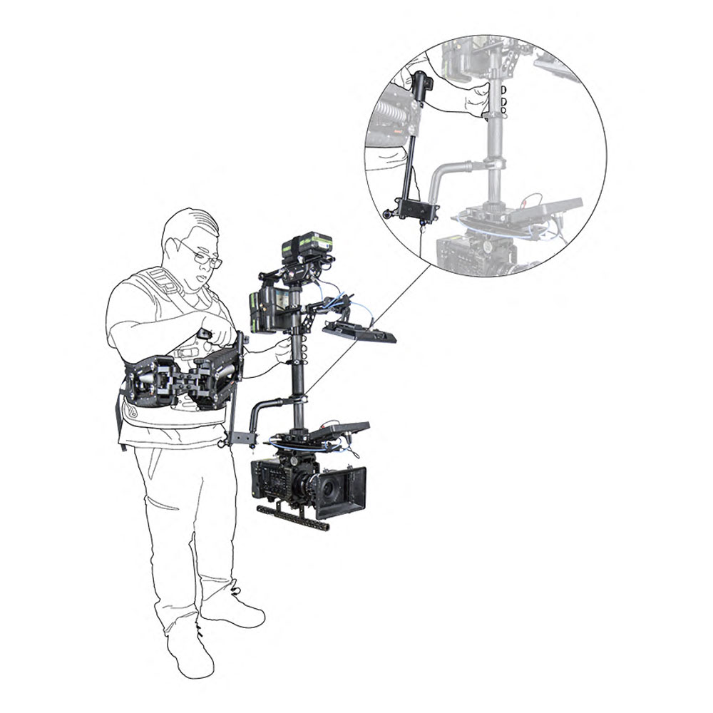The steadicam high/low mode bracket set is primary designed for professional camera operators to have an easier control of your gimbal both in high mode and low mode. Features multiple 3/8″-16 and 1/4"-20 female threads (arri-style mount) on the grip handle provides a great mounting solution for accessories such as monitors, focus controller or articulated arms etc. The length of standard arm post is 320mm (420mm is optional) allows to adjust the configuration for better dynamic camera angle. The bottom of both posts also comes with a through hole for a quick release safety pin (supplied) to ensure the safety for the configuration.