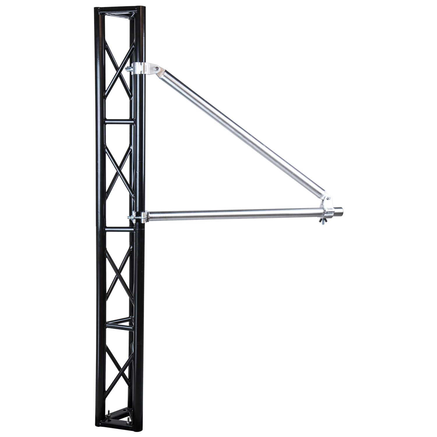 Support arm coupler is made with two articulating joints, making it flexible for most mounting need. It holds vertical and horizontal tubes firmly, offering stable support to each other and eliminating the movement. Ideal for rigging a heavy luminaire or object from truss where a supportive device is needed.