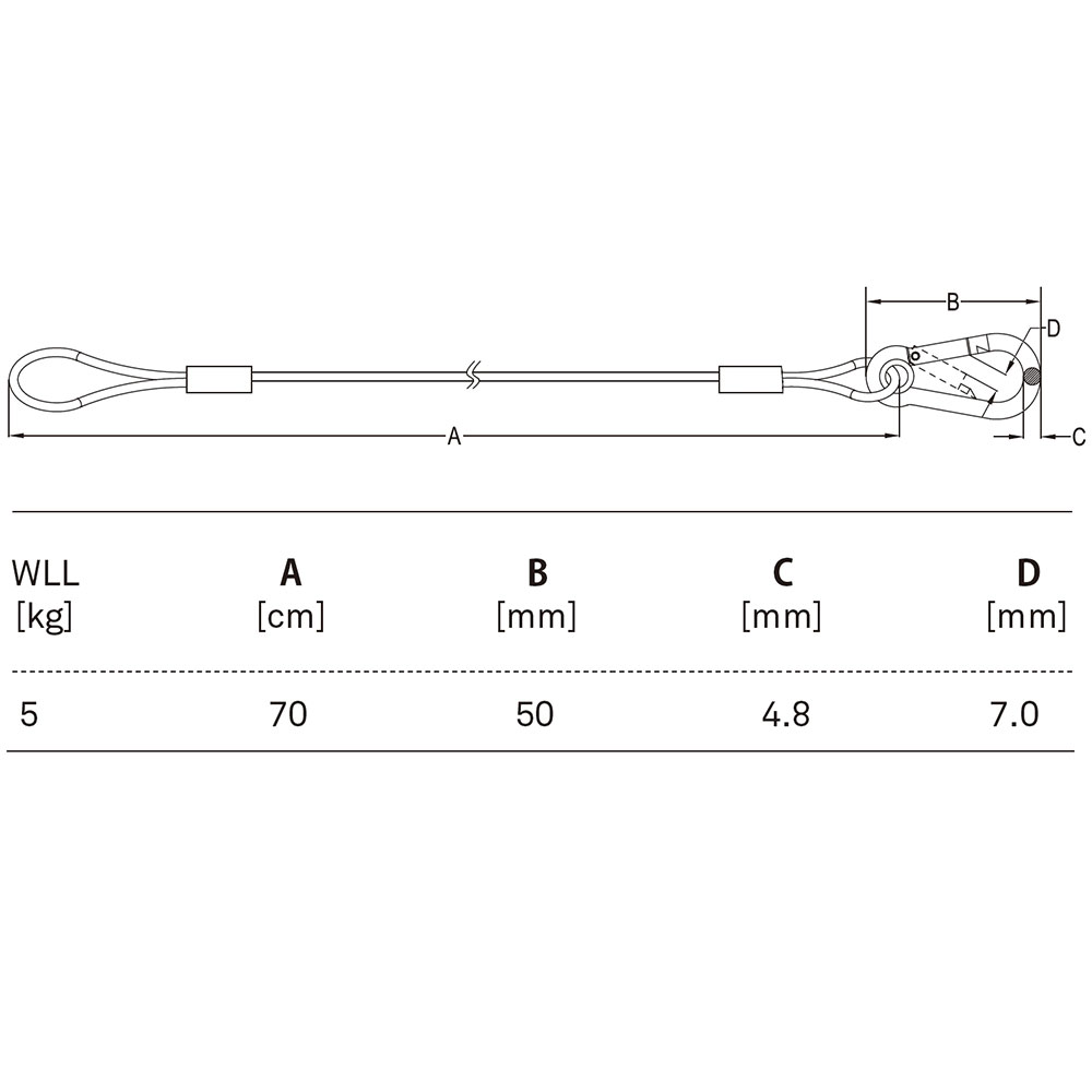 - Wire rope diameter 2.0mm (0.08"), length 70cm (27.55")