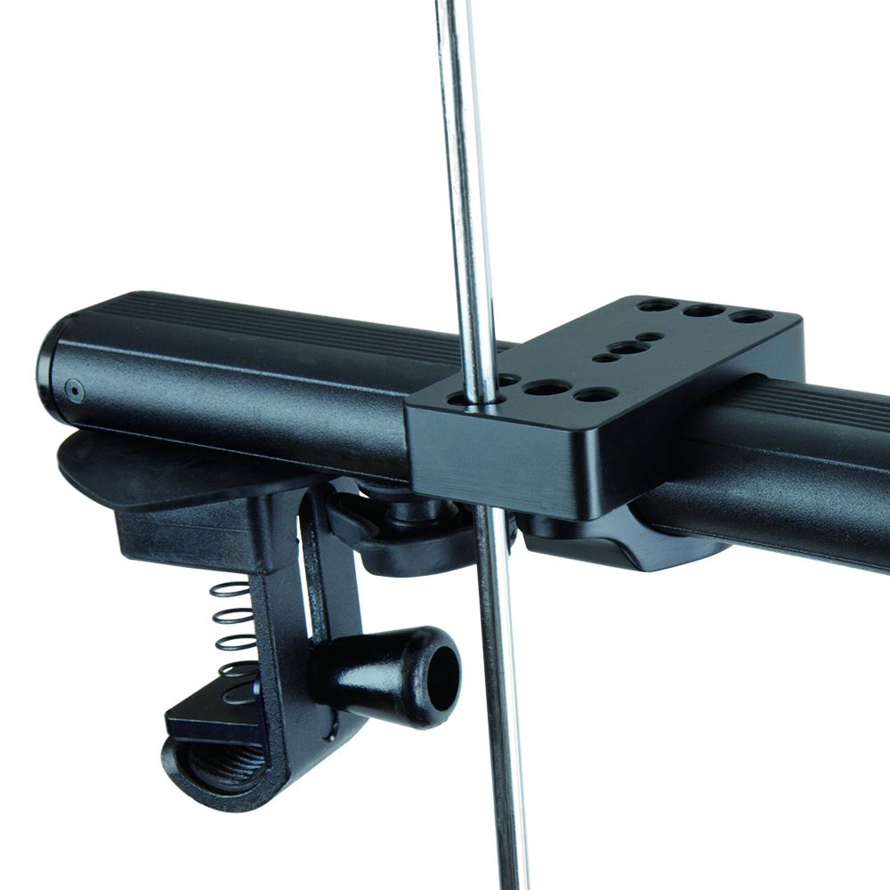This aluminum made adapter designed for holding an umbrella on the upper support bar to prevent the camera operator from rain,