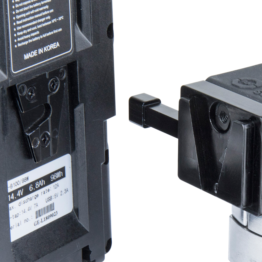 - The V- Lock Wedge Can Bolt into M3 to The Standard V- Mount Battery or any Device comes with 1/4”- 20 or 3/8”- 16 Hole by The Supplied Screws. V- Lock Base Can also be Bolt into M5 to Attach on Convi Clamp by Supplied Screws andone 3/8” to M5 Adapter.