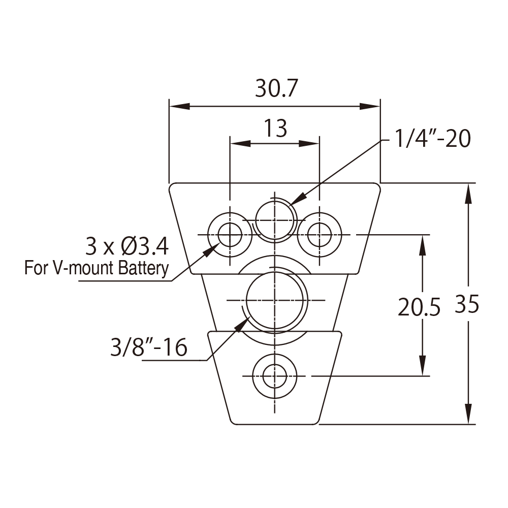 - WithThree M3 Holeand Screws to Firmly Fix The Wedgeon any Standard V- Mount Battery.