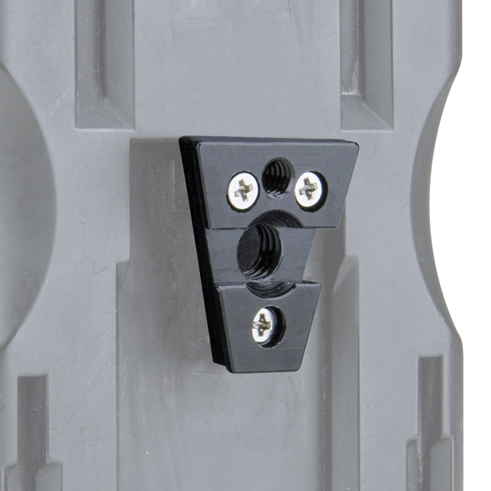 Kupo v-lock wedge is precisely machined from black anodized aluminum with tight tolerances and minimized wiggles. It comes with three m3 hole and screws which are designed to firmly fix the wedge on any standard v-mount battery. It allows you to easily attach the battery on any mounting equipment which comes with Kupo v-lock base (KS-271). Also features a 3/8”-16 central tapped hole that can be mounted on any equipment comes with 3/8”-16 female threaded with the supplied 3/8”-16 screw. The 1/4”-20 tapped hole on the wedge and the 1/4"-20 set screw are also supplied to prevent it from twisting while the wedge is fastened with screw on the 3/8”-16 tapped hole