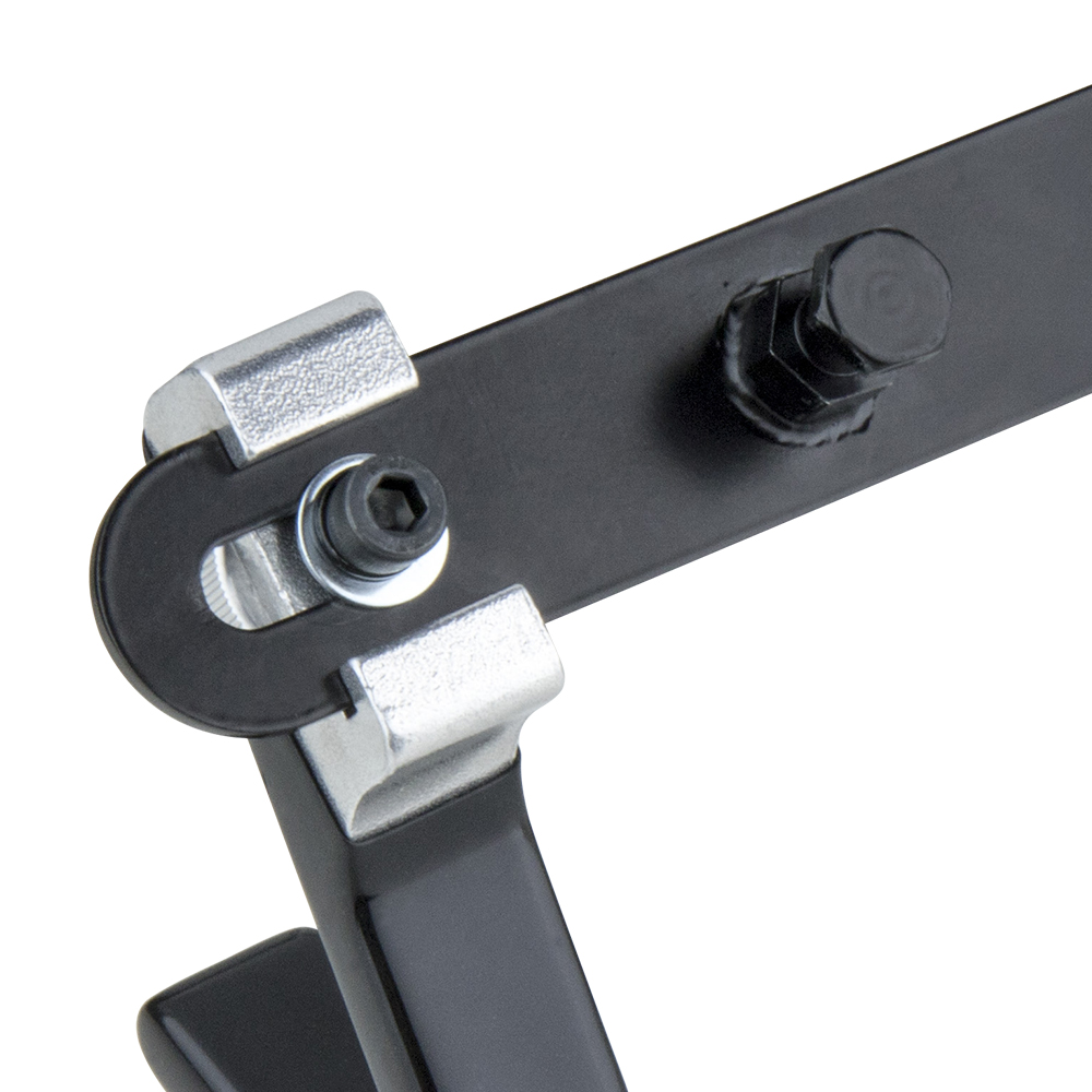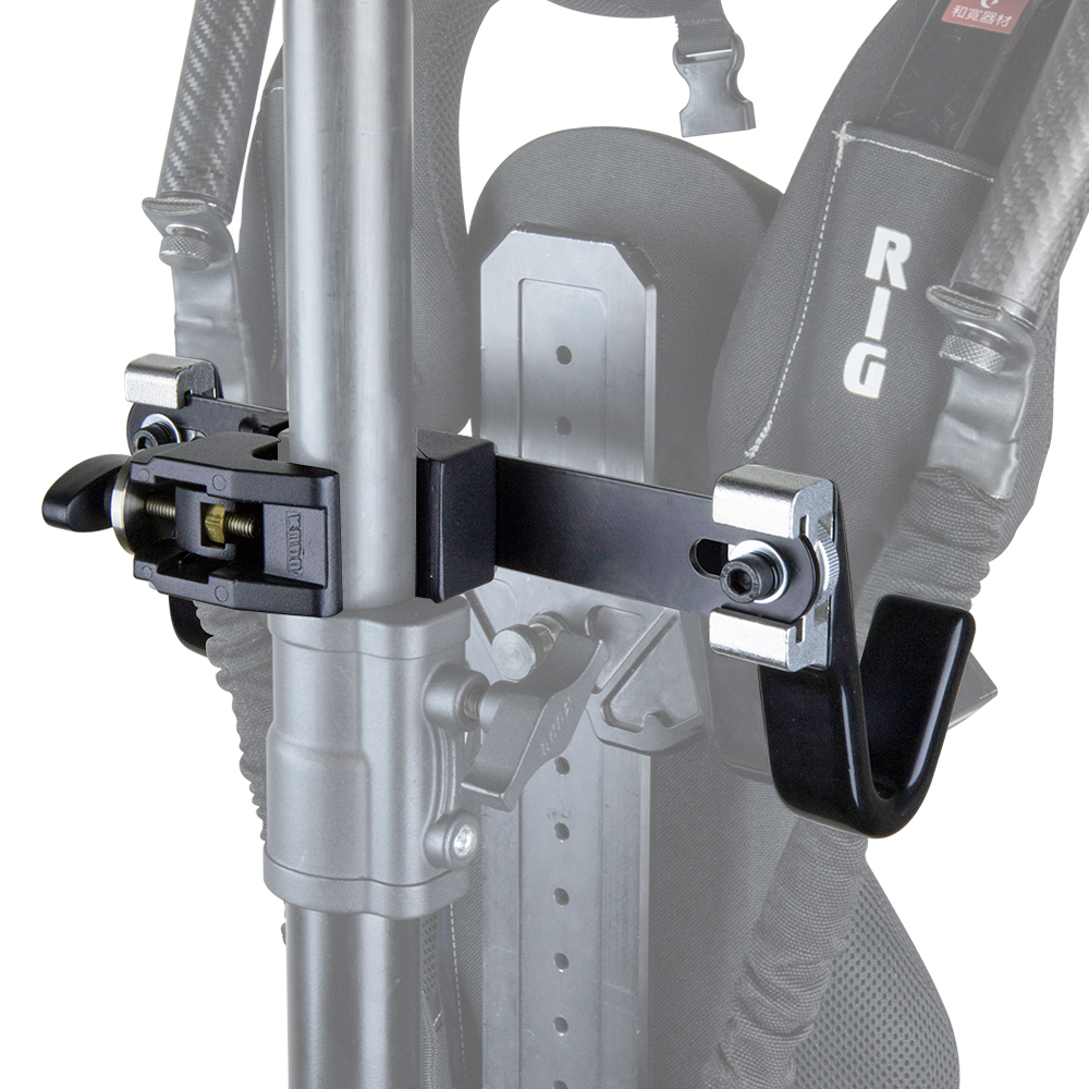 Constructed from solid black painted steel and rubberized aluminum hook, the docking bracket is designed for operator to place the ready rig vest effortless. The 16mm (5/8”) baby stud is weld on the back of steel plate allows to perfect insert into the super convi clamp (KCP-700) and to mount the bracket easily on the stands. Both hooks are able to be moved with the allen key #6 to adjust the pitch for the movcam vest as well.
