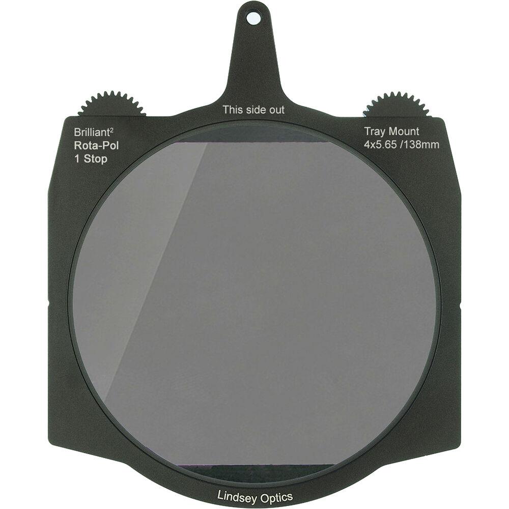 The Brilliant 1-Stop Rota-Pol Circular Polarizer from Lindsey Optics is a 138mm rotating circular polarizer with one stop of light reduction designed for use in 4 x 5.65" matte boxes, offering you greater control of reflections, glare, and your overall exposure when shooting. The polarizer can be adjusted with the two geared thumb wheels, either by hand or with a motor mounted to the ¼”-20 hole, and it includes an all-aluminum main gear supported by internal Delrin rollers for smooth, no-slip rotation.