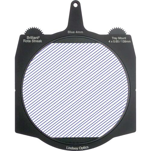 This Brilliant² Rota-Streak from Lindsey Optics is a 138mm glass filter in a frame made to fit standard 4 x 5.65" matte boxes. The filter has embedded blue rods in a fixed pattern to create the effect as if looking through a crystal. The filter allows you to create an in-camera streak effect on bright lights and highlights in the shot. The filter frame features two gears, one on each side of the tray for flexibility in rotating the filter from either side of the lens, and you can rotate the filter either manually or by using a motor to position the filter effect in any desired position.