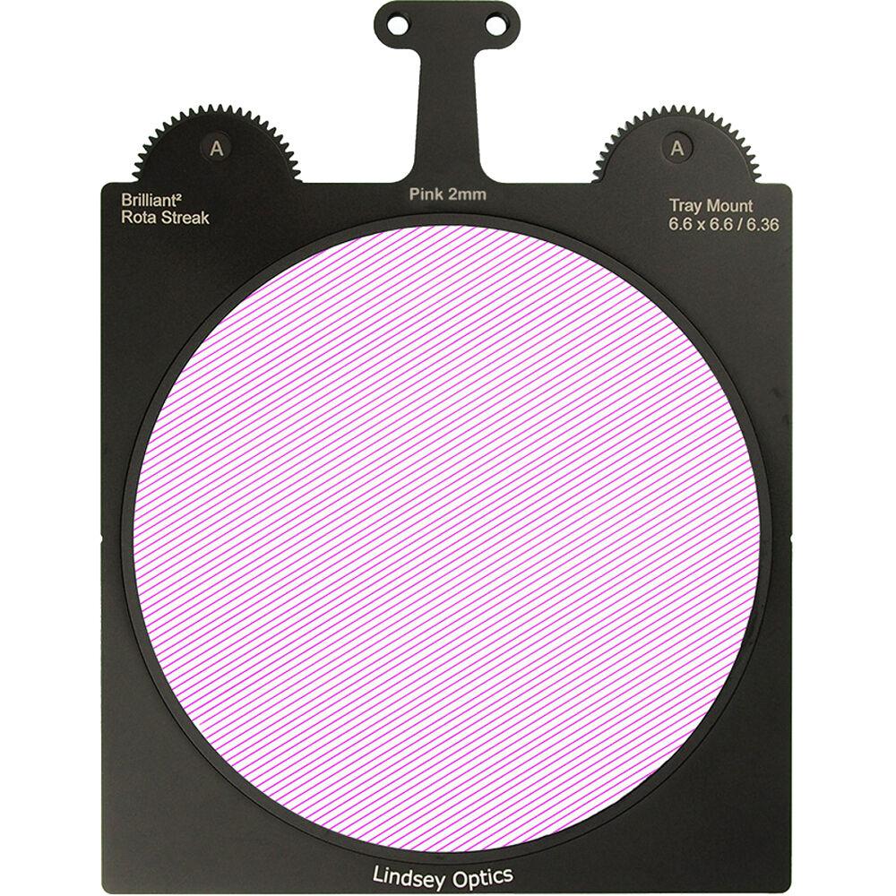 This Brilliant² Rota-Streak Filter from Lindsey Optics adds a pink-tinged, two-point streak effect on bright lights and highlights in the shot. Its frame is compatible with most 6.6 x 6.6" matte boxes and features two integrated gears, one on each side of the tray, for flexibility in rotating the filter from either side of the lens. Rotate the filter manually or use a motor to orient the filter's effect in your desired position.