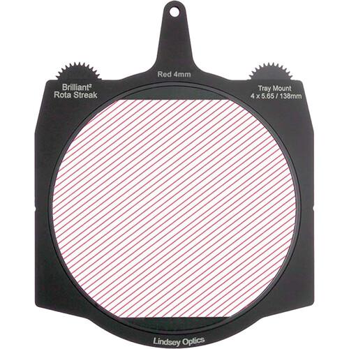 This Brilliant² Rota-Streak Filter from Lindsey Optics adds a red-tinged, two-point streak effect to bright lights and highlights in the shot. Its frame is compatible with most 6.6 x 6.6" matte boxes and features two integrated gears, one on each side of the tray, for flexibiltiy in rotating the filter from either side of the lens. Rotate the filter manually or use a motor to orient the filter's effect in your desired position.