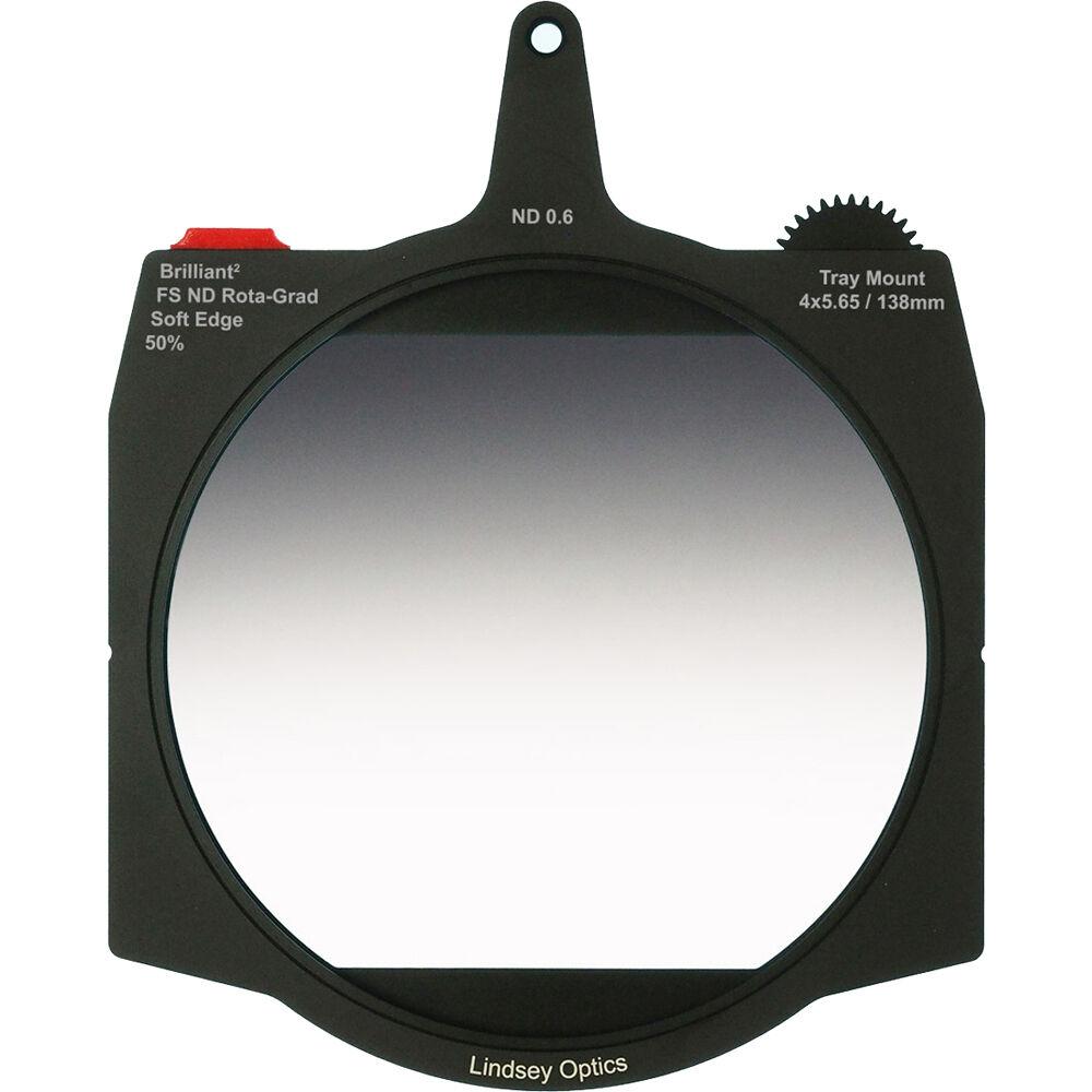 This Rota-Grad FSND Graduated ND Soft Edge Filter from Lindsey Optics fits into a 4 x 5.65" tray and has a geared thumbwheel allowing you to adjust the angle of the soft-grad edge. The geared thumbwheel allows you to use available lens motors to precisely adjust the angle in the shot. Meanwhile, the filter features a Rota-Lok which secures the filter's rotation, so it doesn't shift unexpectedly. Typically used to control exposure of the sky, this 2-stop filter darkens and controls exposure in bright areas of the frame while not affecting darker areas, such as the ground and when photographing landscapes.