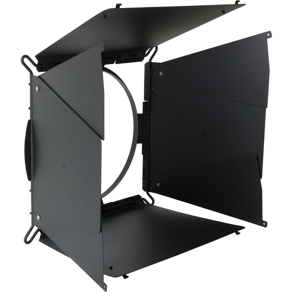 Featuring an eight-leaf design, these 12.7" diameter 8-Leaf Rotating Barndoors for Studio X5 and X6 LED Fresnel Lights from Litepanels have a rotatable function for effective control of the light's output. By simply swinging its leaves into the light's beam, this modifier is useful for lighting areas of the subject while keeping light from areas you don't want illuminated. These rotating barndoors are designed for use with the Studio X5 and X6 LED Fresnel lights.