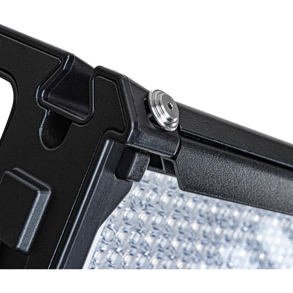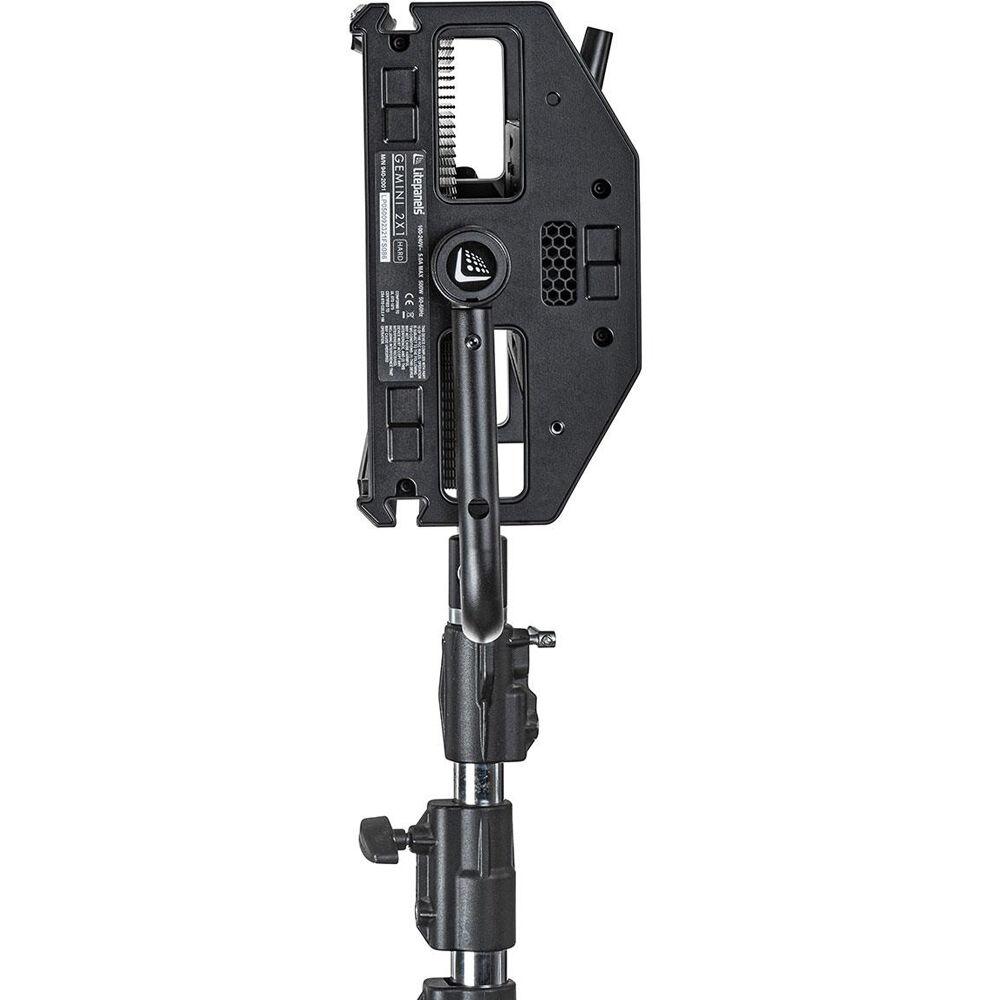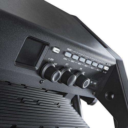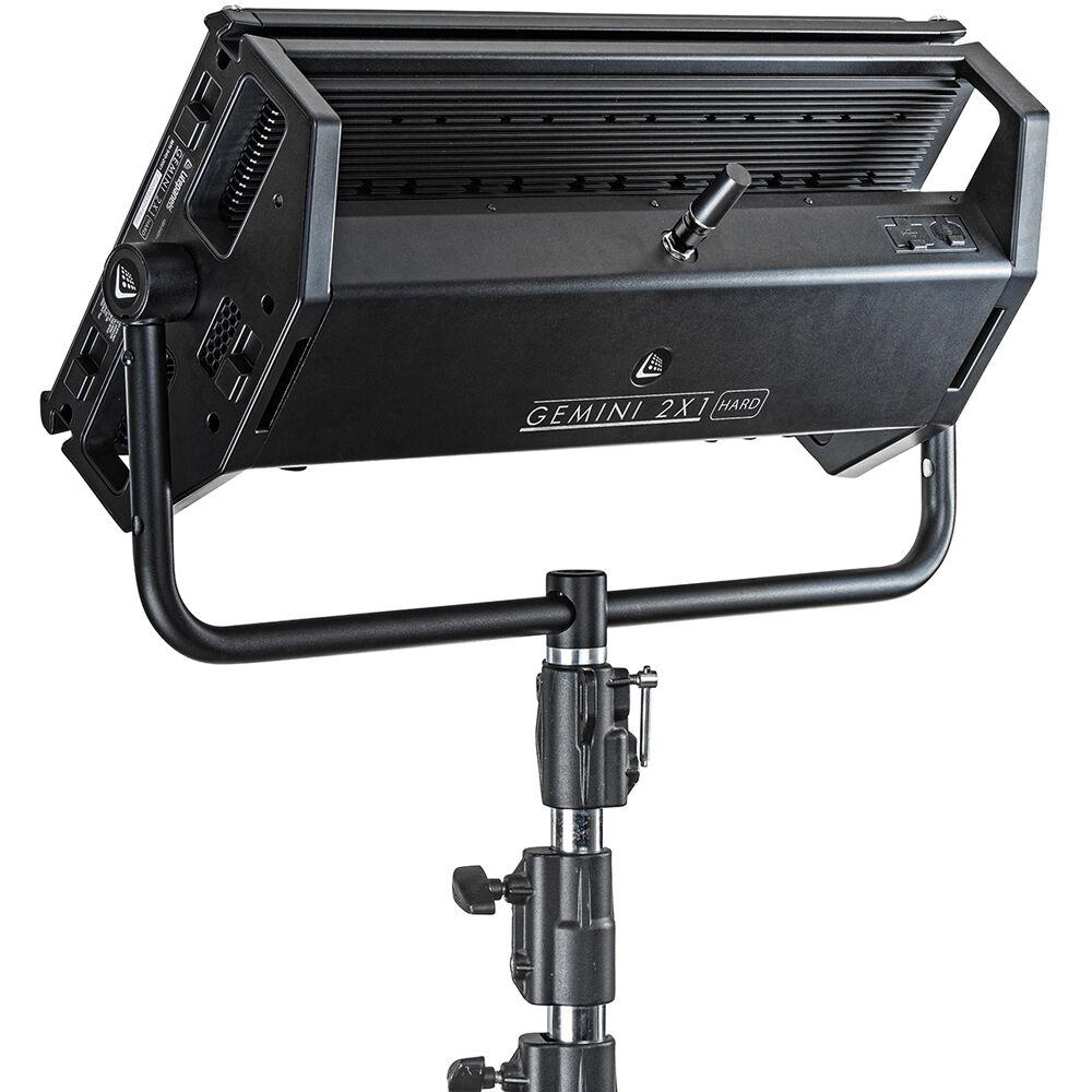 Providing high-quality cinematic lighting features in a lightweight and easy-to-use fixture, this Gemini 2x1 Hard RGB LED Panel from Litepanels offers a high light output of 23,000 lux at 9.8' with a color temperature range of 2700 to 10,000K, enabling this panel to accurately match both tungsten and daylight light sources. The 0 to 100% flicker-free dimming lets you adjust the light output, and full plus/minus green color correction control and a high CRI of 95 ensure color accuracy. Full RGBWW color gamut mixing and a built-in HSI color mode enable full-color control over hue, saturation, and intensity. The panel provides a gel mode with up to 300 different colored gels to choose from, and an effects mode with 11 unique special effects. All of these adjustments can be made locally on the unit or remotely via a console, and there's even the option of wireless operation via DMX, RDM, and CRMX protocols.