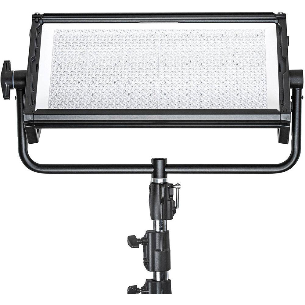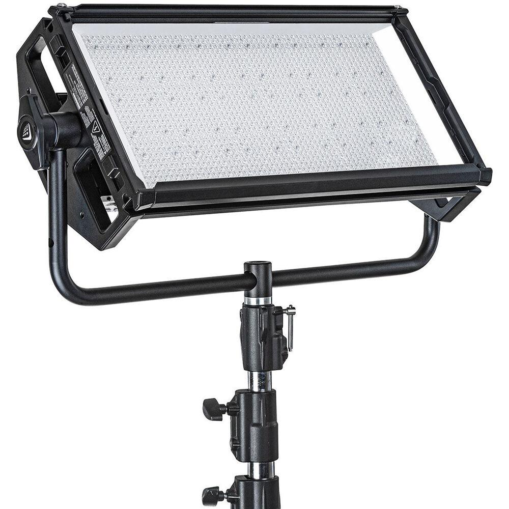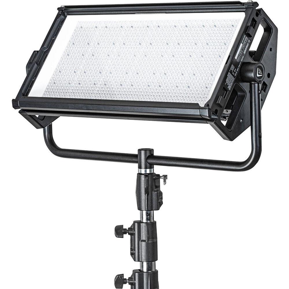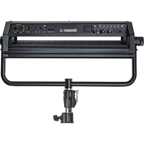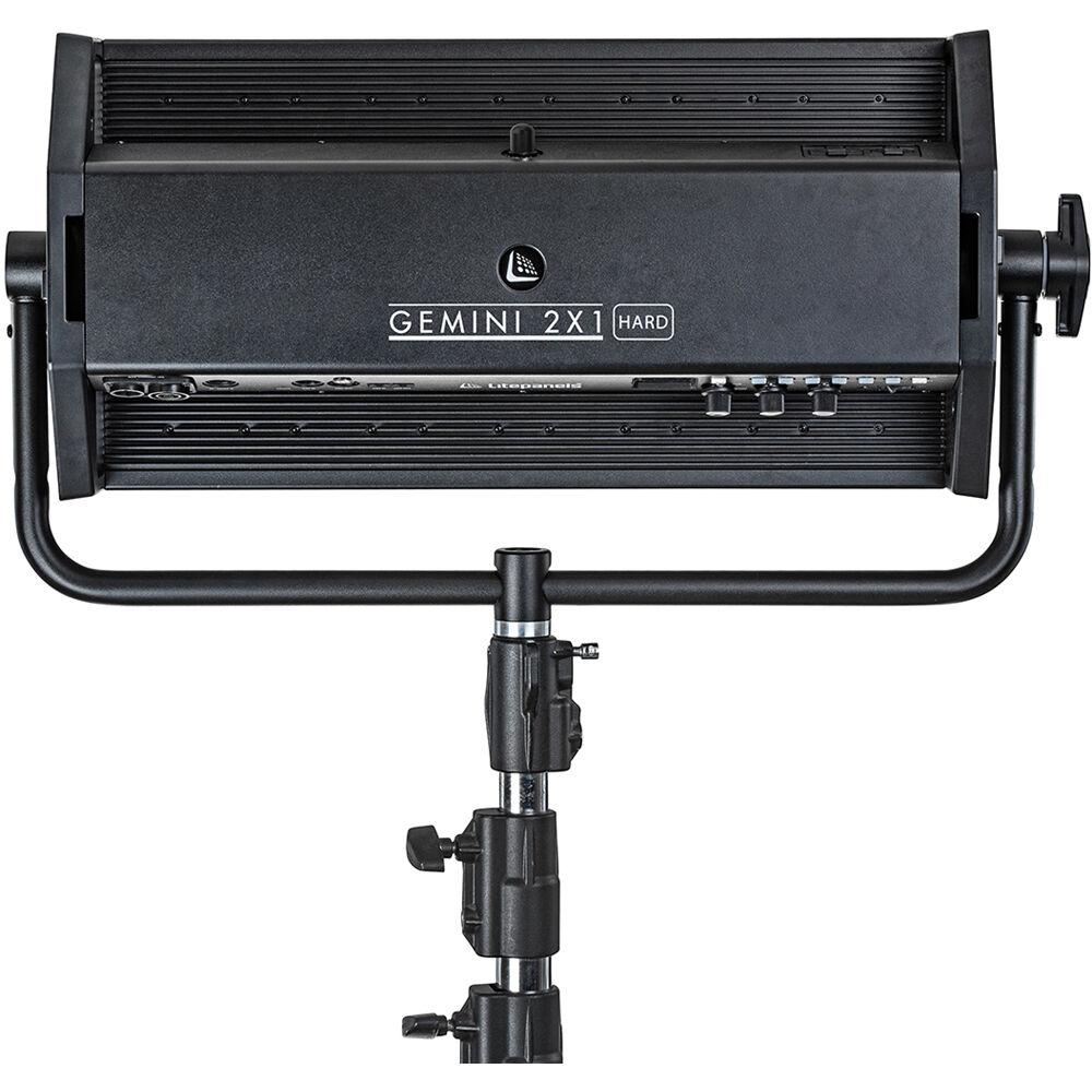 Providing high-quality cinematic lighting features in a lightweight and easy-to-use fixture, this Gemini 2x1 Hard RGB LED Panel from Litepanels offers a high light output of 23,000 lux at 9.8' with a color temperature range of 2700 to 10,000K, enabling this panel to accurately match both tungsten and daylight light sources. The 0 to 100% flicker-free dimming lets you adjust the light output, and full plus/minus green color correction control and a high CRI of 95 ensure color accuracy. Full RGBWW color gamut mixing and a built-in HSI color mode enable full-color control over hue, saturation, and intensity. The panel provides a gel mode with up to 300 different colored gels to choose from, and an effects mode with 11 unique special effects. All of these adjustments can be made locally on the unit or remotely via a console, and there's even the option of wireless operation via DMX, RDM, and CRMX protocols.