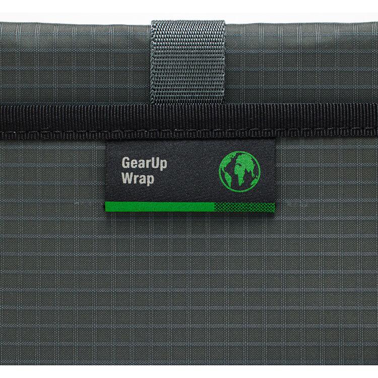 This gray Green Line GearUp Wrap from Lowepro is a streamlined, portable organizer designed to hold your smartphone travel essentials. It features multiple pockets, including one zippered pocket. The elastic webbing ideal for storing cords, cables, USB chargers, and an extra battery. This wrap is part of Lowepro's Green Line series and is made with up to 68% recycled fabric.