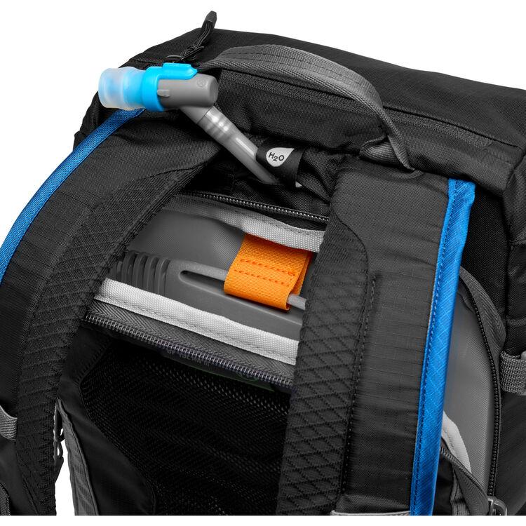 Made with 75% recycled materials and the pilot for a new line of sustainable products to follow, the black with blue LowePro PhotoSport BP 15L AW III Photo Backpack is built without compromise to give adventure photographers and explorers the right pack for all their outdoor activities. Built as a one-bag solution, it features a removable camera insert that you can use in multiple configurations with the strap system, either by itself or integrated into the harness for maximum protection and convenience. The insert can be stowed in the pack when you aren't using it.