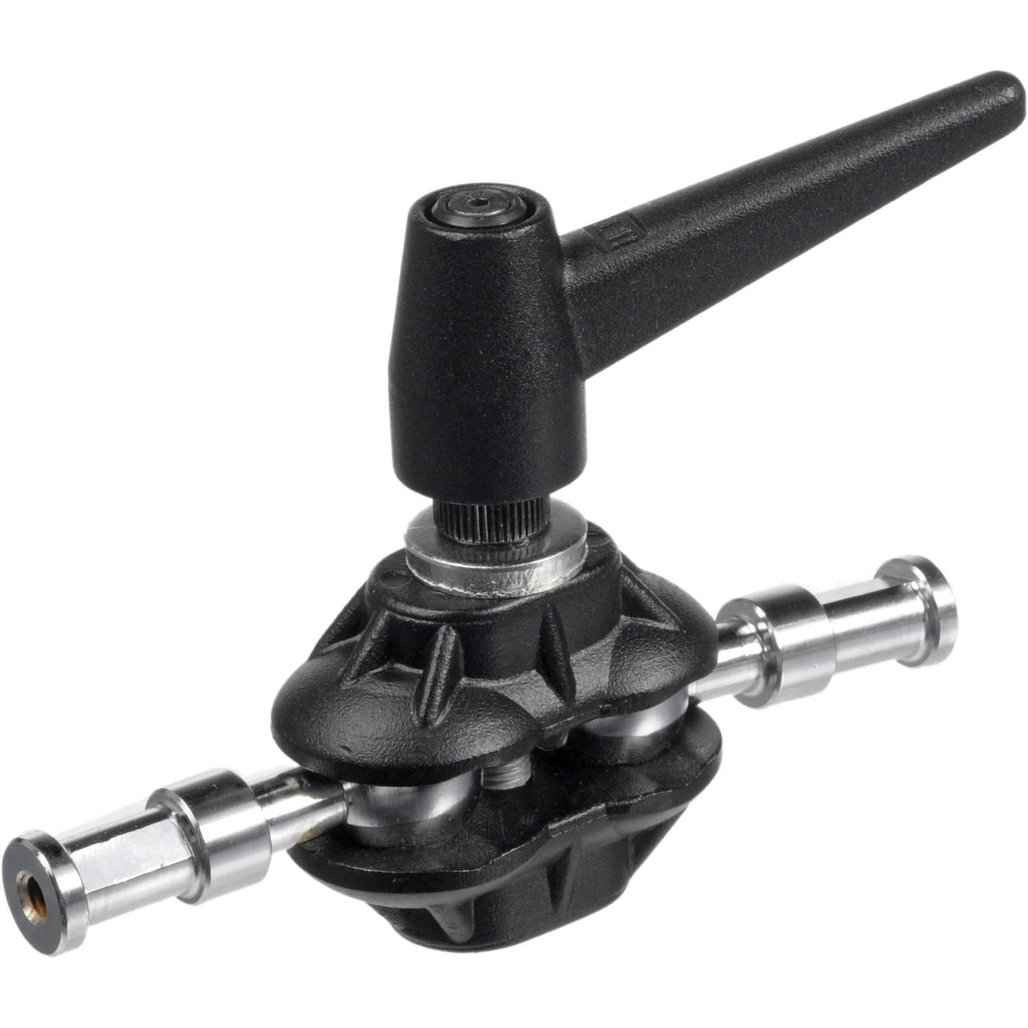 Twin swiveling 5/8" spigots and single lever lock. Height: 5.7" (14.5 cm) without camera mount plate.