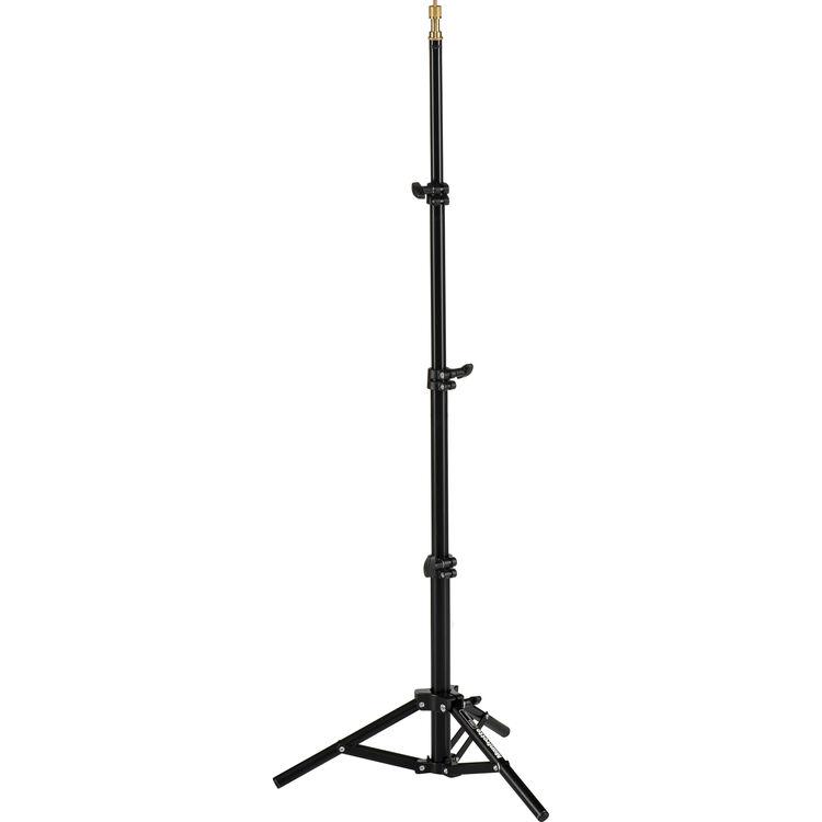 The Manfrotto Backlite Mini Kit Stand is a versatile, hardworking, lightweight, aluminum stand. It is quick to set up, and very stable. It features a black anodized finish, plus a removable 1/4"-20 threaded tip that reveals a 3/8" threaded tip on the top 5/8" Baby top stud.
