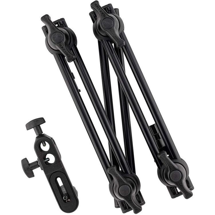 The 3-Section Double Articulated Arm with Camera Bracket from Manfrotto has three adjustable sections. The 396 Series of arms is more rigid than the 196 range to support heavier loads—up to 9.9 lb. Its extendable sliding arm system extends up to 34" long and features a quick-lock system.