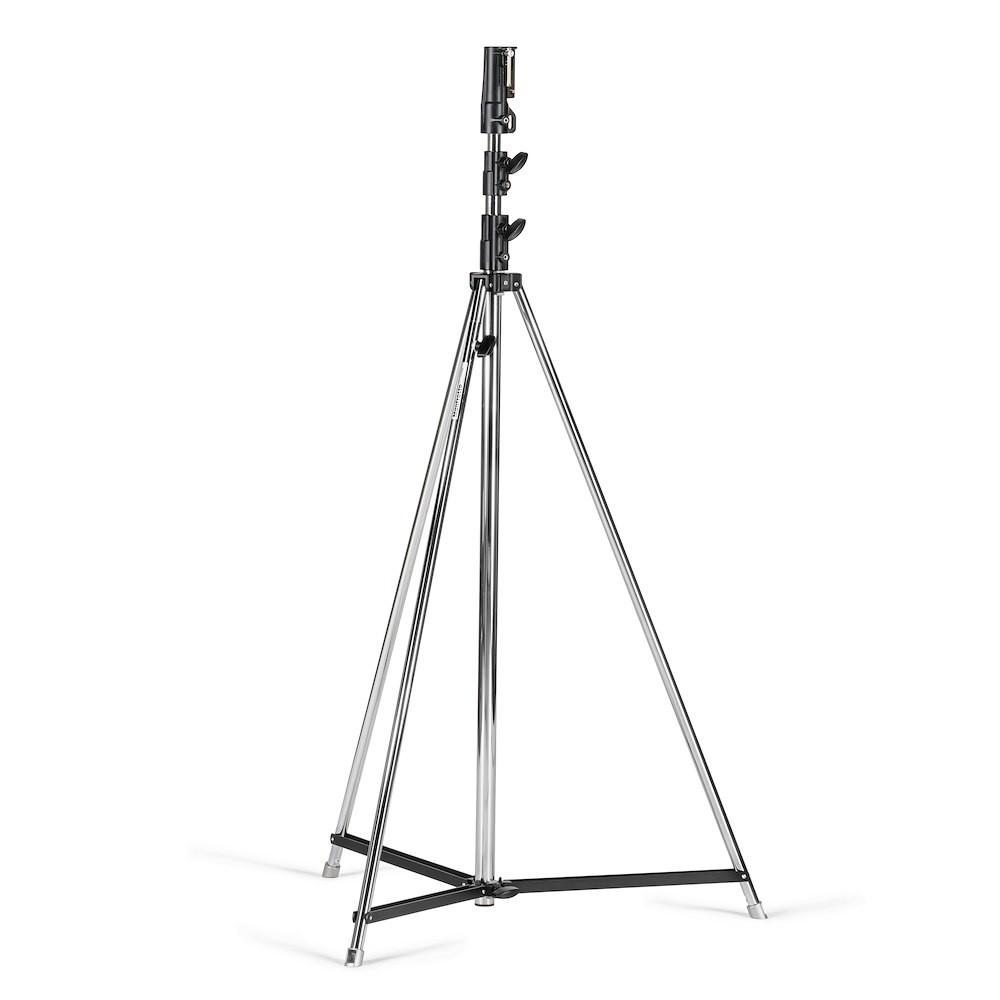 The Manfrotto 3072 Tall Steel Cine Stand is constructed of chrome-plated steel. Extra strong, provides support of light fixtures of up to 55 lbs to a maximum height of 12.5 feet.
