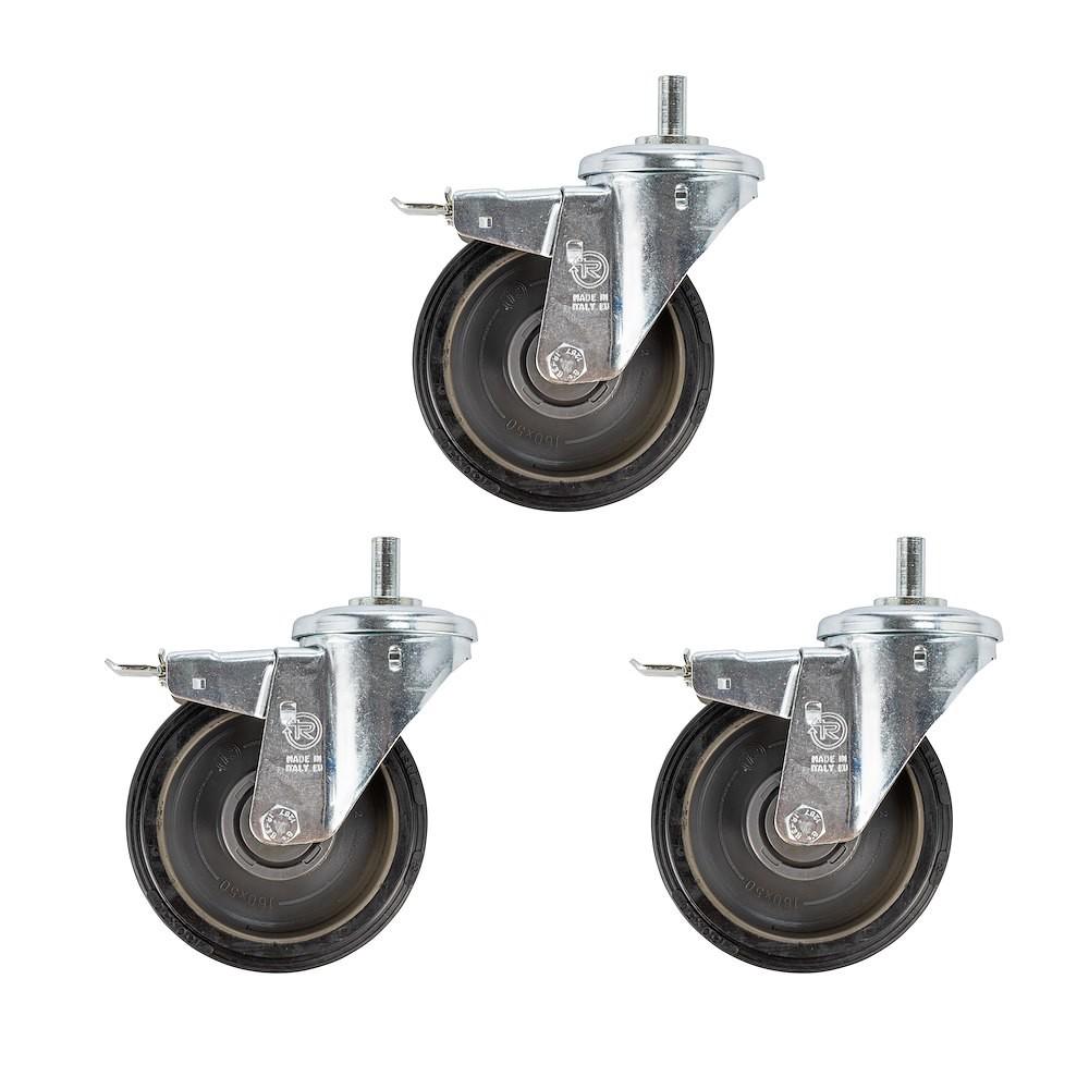 This is a set of 3 braked wheels that are 6.3 inches (160mm) in diameter. Designed to be used in extreme conditions of overload. These wheels, having a wide tread, sink into soft ground much less than any other model.