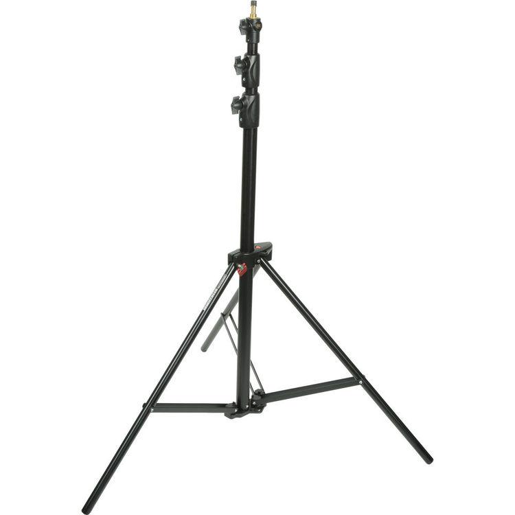 The Alu Ranker Air-Cushioned Light Stand from Manfrotto is a black anodized aluminum stand that rises to a maximum height of 9'. The patented Quick Stack System (QSS) allows the stand to fold flat, offering enhanced portability by its ability to stack on other similar stands. This saves a lot of space while storing them in the studio or on location.