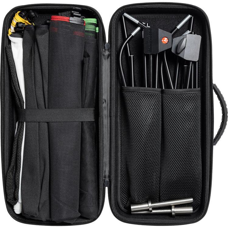 Quickly contour and control the light falling on your subject with this Rapid Flag Kit from Manfrotto. The kit includes four fabrics that are stretched into the 18 x 24" shape when attached to the brand's RapidExoframes. The kit contains a 0.6-stop single net, a 1.3-stop double net, a 1.6-stop artificial silk scrim, and a solid black duvetyne cover. Whether you're a content creator on-the-go or an image maker in need of portability, this kit is an all-in-one lighting modification system for shaping, diffusing, or blocking light in any environment.