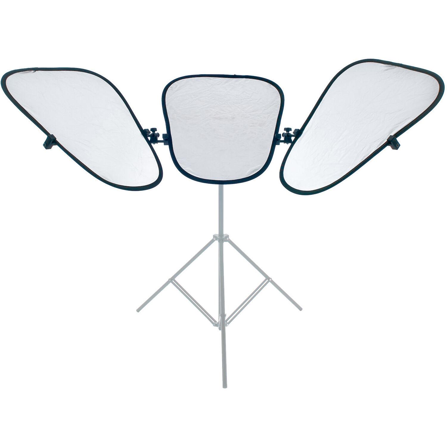 The unique and compact Triflector MKII Frame + Silver/White Panels are versatile and easy to use. The three Trilite white/silver panels can be placed on a separately purchased light stand and used with an optional overhead light to give the subject distinctive catch lights in their eyes. It's widely used in portrait and fashion photography.