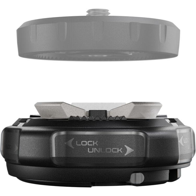 The XCHANGE Base from Manfrotto is part of a unique circular quick release system set that can lock in an XCHANGE plate with just a twist. Additionally, a safety switch is featured on the bottom of the Base to prevent any accidental releases.