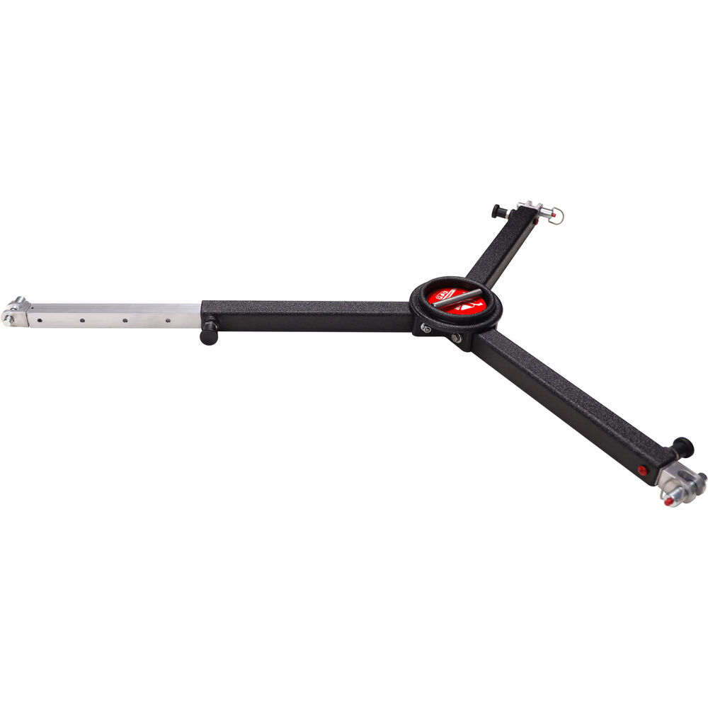 This 3iSpreader is the result of years of careful consideration and innovation. Tripod feet securely connected to the spreader via three quick release pins, enabling the on-the-fly flexibility one needs in a complex production environment. The tripod can still collapse with the spreader installed for hassle-free transport between locations. The center pivot bracket puck is designed with an ergonomic recessed handle to effortlessly collapse the tripod.