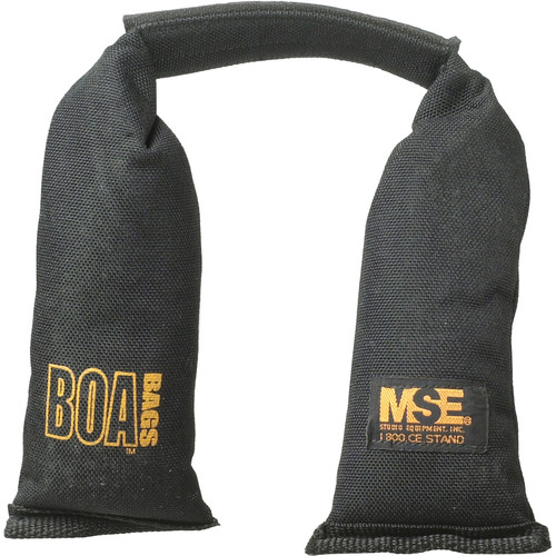 While traditional sandbags are an invaluable and irreplaceable component of professional grip kits, the Boa Bag adds a lighter-weight option for different applications on set. One common use of the Boa Bag is as a counterweight when mounting light fixtures and modifiers at an extended length using a boom arm. Boa Bags are quick and comfortable to carry from setup to setup thanks to the wide center strap with a sewn-in rubberized patch; this non-slip section also helps the bag rest securely on grip arms and other surfaces. Because the strap is long enough for the bag to fully wrap around stand legs and other shafts in a bola-like fashion, it cannot be easily knocked off its proper position.