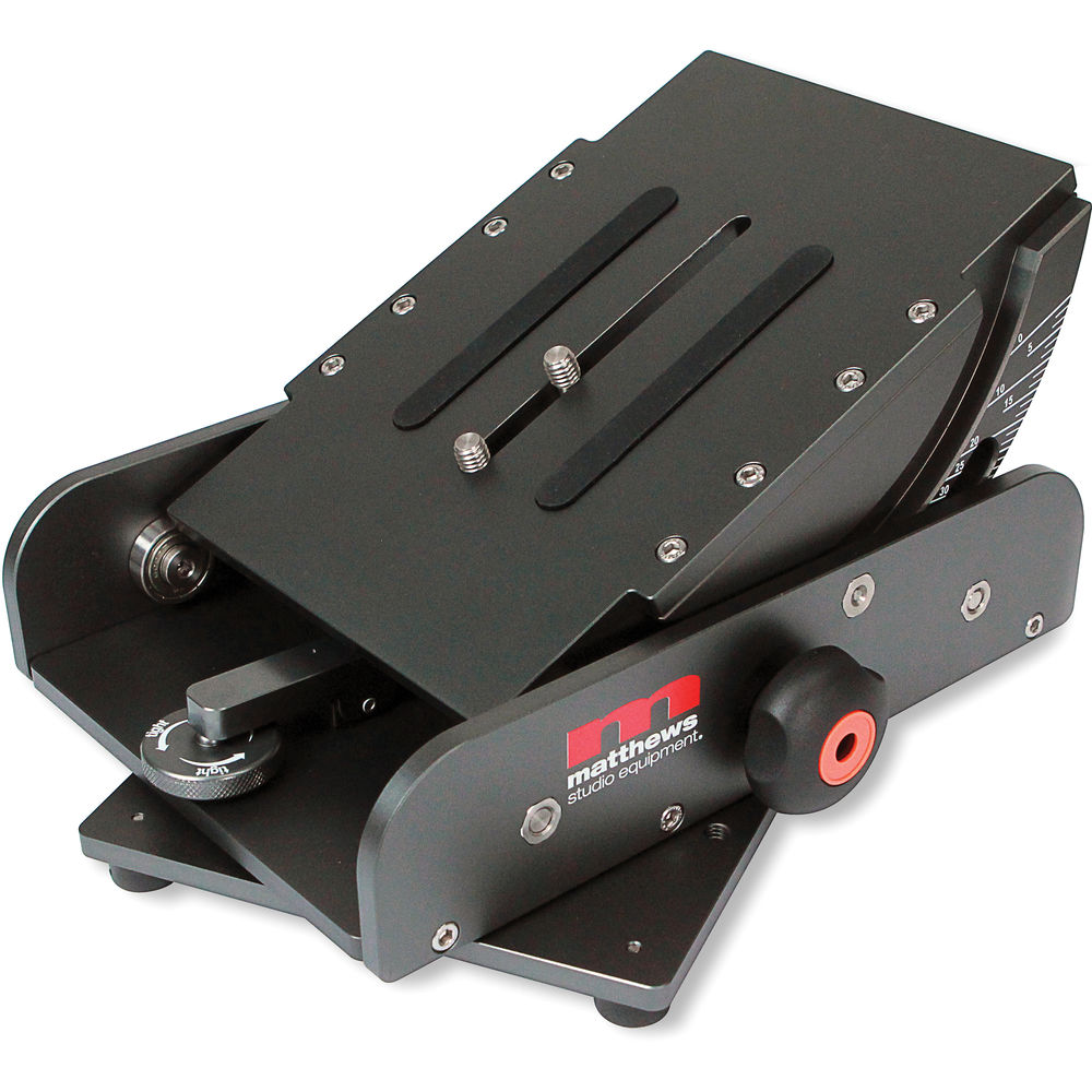 The CAM Tank Mount from Matthews is used with all large format camera plates or directly mounts to any large or medium format camera equipped with 3/8"-16 mounting holes. It is designed for low shots, without taking away your ability to pan and tilt the camera. It is also used to achieve dutch angles when mounted to a fluid head, or shots designed to be pointed straight down off of a fluid head on a tripod or jib. The bottom of the plate has 17 strategically placed 3/8"-16 tapped holes spaced 1" apart, complying with Motion Picture Industry Standards.