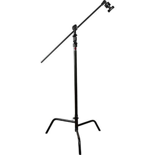 This Matthews Century C+ Grip Head Kit consists of a black Century C+ stand with a 40" main riser and removable turtle base, a 2.5" swivel grip, and a Hollywood Arm that can hold a small light fixture, gobo, or flag. The unique staggered leg design of a C-stand allows it to be nested and placed extremely close to one another on a set. The stand rises to a maximum height of 10.5'.
