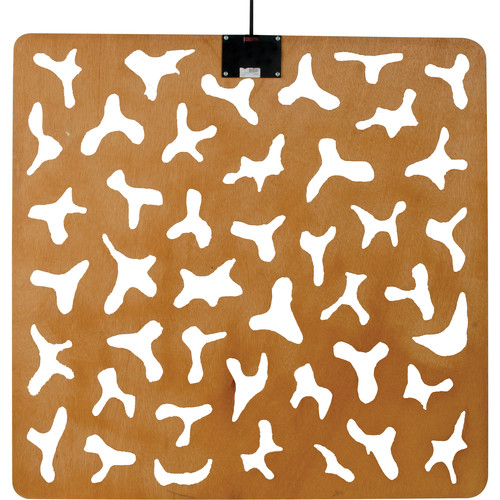 The Cucoloris is used to create shadow patterns on backgrounds or subjects. A flatly lit wall can be broken up into interesting pools of light and shadow. Lighting directors frequently use them to simulate sunlight filtering through trees.