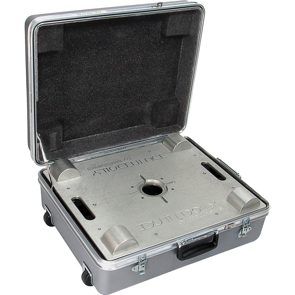 The silver Matthews Dutti Dolly Rental Kit offers a portable camera dolly platform with up to 800 lb payload capacity in one carrying case. With a platform height of under 2", the Dutti Dolly can be used directly on smooth surfaces or with either an industry-standard speed rail or a commercially available tubing. This cost-saving kit was assembled with the input of professional grips and rental houses to provide all needed components except for the track. It includes 75, 100, and 150mm tripod head bowls, a 2.5" Mitchell riser, three track brackets with 16" center-to-center spacing, and two 5/8 to 3/8" Baby Pins.