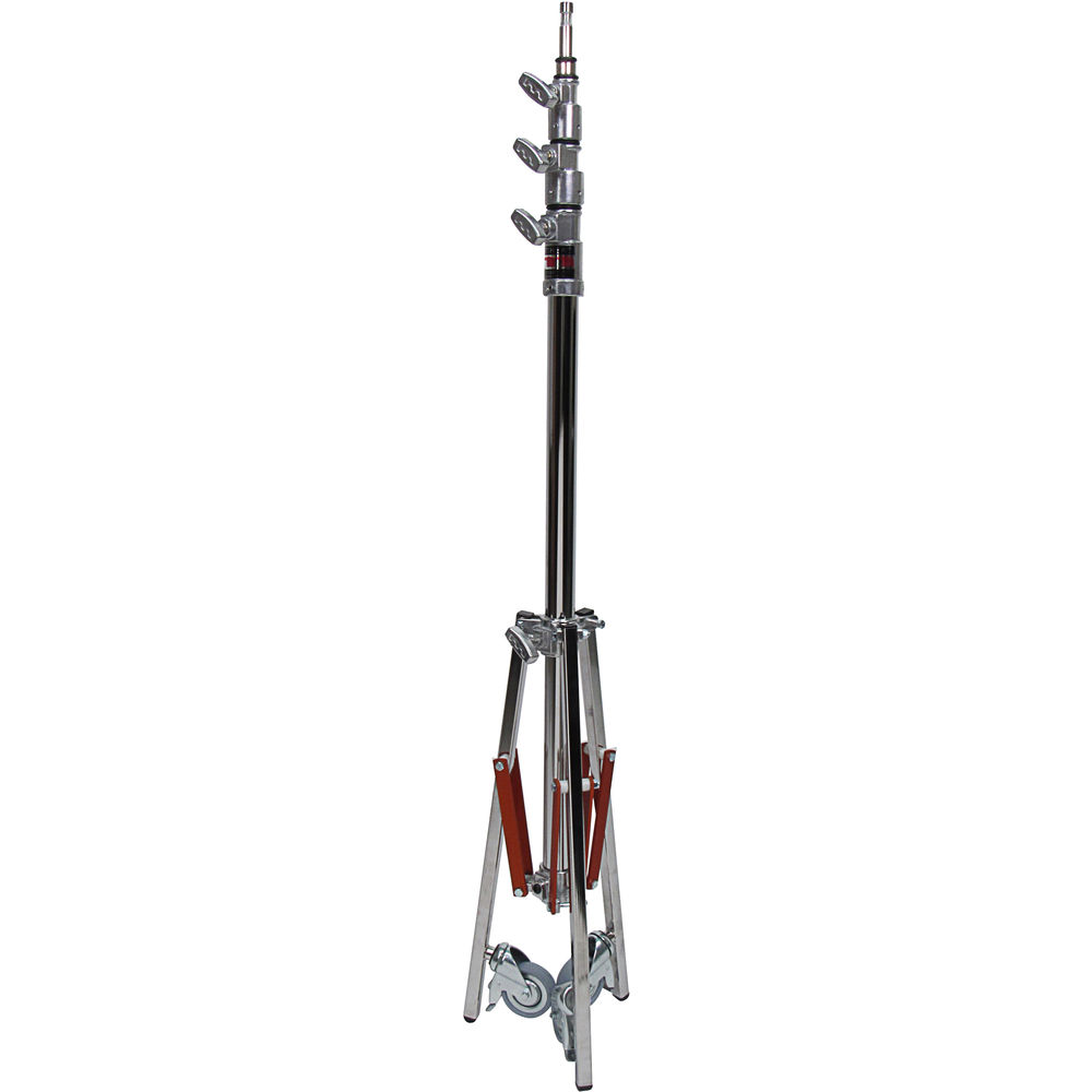 This Matthews Baby Jr. Triple Riser Stand is designed to support baby fixtures which require a 5/8" mounting pin. This stand has steel legs and riser. The tripod brace base, with all axis locking casters provides great stability.