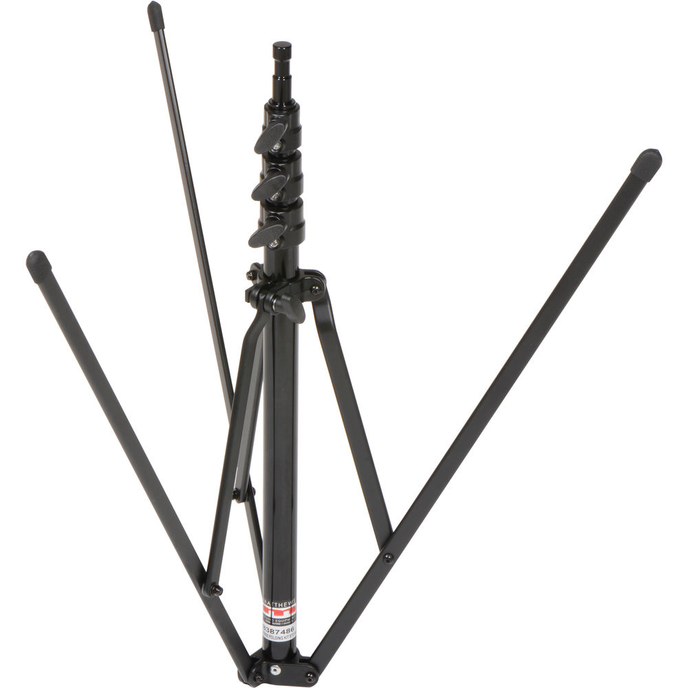 The Matthews Reverse Stand is best suited for location work, since it can fold back on itself into a very compact package only 22.75" (58 cm) long. It has four risers, and its maximum height is 83.5" (2.1 m).
