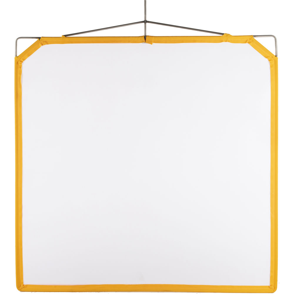 The 48 x 48" Solid Frame Scrim White Artificial Silk from Matthews is made with two "ears" at the bottom that protect fabric when frames are slid in and out of their storage boxes and can be used as a point to tie off when used in certain conditions. To keep weight to a minimum and yet get maximum strength, all MSE Solid Frames are made of 3/8" thin wall tubing. The mounting pin is solid rod, and the frame is black powder-coated to minimize reflections.